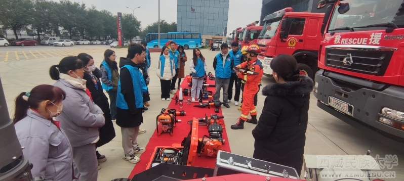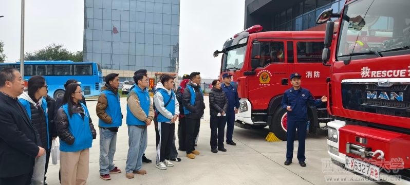 在消防救援工作人员引导下,师生首站参观执勤车辆与专业装备库,详细了解了灭火消防车、登高平台车等车型的功能与应用场景,并演示消防器材操作;在个人防护装备展示区,工作人员介绍灭火防护服、化学防护服等装备的用途与技术标准,师生亲自体验了防护服与空气呼吸器穿戴;随后师生参观消防站内务、备勤室、学习室、健身房等场所;荣誉室里,锦旗与奖杯承载的英勇事迹令师生深受触动。