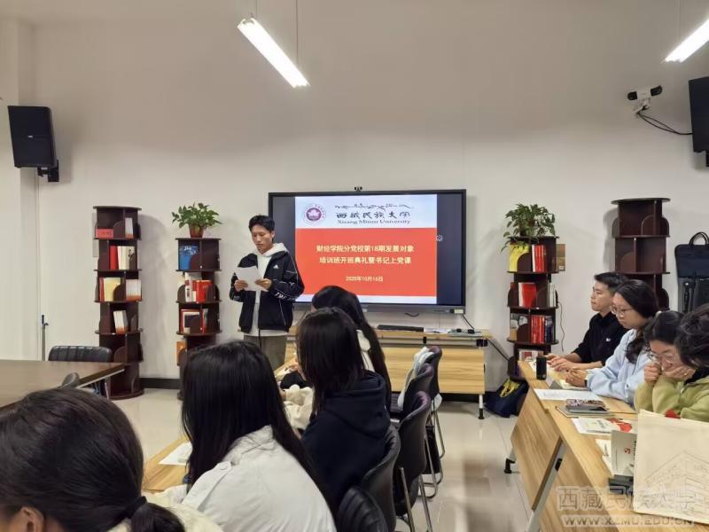拉巴顿珠强调,党员发展对象培训班是贯彻落实《中国共产党章程》和《中国共产党发展党员工作细则》的重要部署,使学员对党的基本知识有系统的学习和了解,对提高学员对党的先进性和纯洁性的认识、积极向党组织靠拢具有十分重要的指导意义,他要求:一是要筑牢思想根基,强化理论武装。深入学习习近平新时代中国特色社会主义思想,深刻领悟“两个确立”的决定性意义,增强“四个意识”、坚定“四个自信”、做到“两个维护”。二是要锤炼党性修养,增强责任担当。以党员标准严格要求自己,在学习、工作和生活中发挥模范带头作用,主动服务同学、服务学院发展。三是要严守培训纪律,规范自身言行。学员们要把严守党章党规党纪作为对党忠诚的重要检验,守纪律、讲规矩、知敬畏、存戒惧,自觉在廉洁自律上追求高标准,在严守党纪上远离违纪红线,真正做到把“两规”刻印在心、落实于行。四是要坚持学以致用,提升实践能力。将理论学习与财经专业特色相结合,把党校所学转化为推动学习和工作的实际行动,在青春的赛道上跑出最好成绩,为国家经济建设、西藏社会服务和发展贡献青春力量。