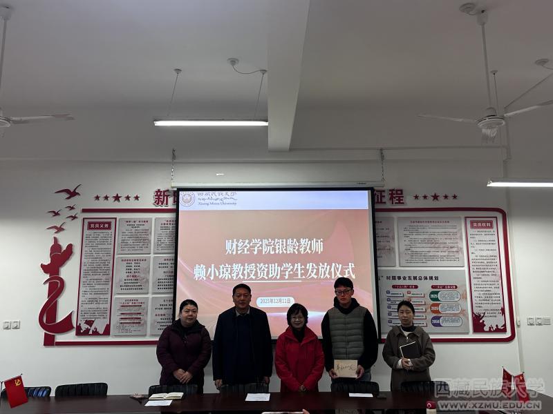 学院党委书记拉巴顿珠向受助学生寄语讲话,他强调,资助是手段,育人才是目的。此次资助不仅是物质上的帮扶,更是精神上的巨大鼓舞。他勉励受助学生要铭记这份爱心,将感恩之情转化为刻苦学习的动力,不仅要在学业上追求卓越,更要在思想上积极进步,在生活中乐观向上,以优异的成绩回报社会、回报恩师,不辜负学院和赖老师的期望。他鼓励索巴同学要把外界的帮助化作前行的翅膀,不畏艰难,勇于担当,并把这份善意传递下去,书写属于自己的精彩青春篇章。此次发放仪式的成功举行,不仅为受助学生送去了物质上的关怀,更在学院内营造了崇德向善、爱心传递的良好氛围。