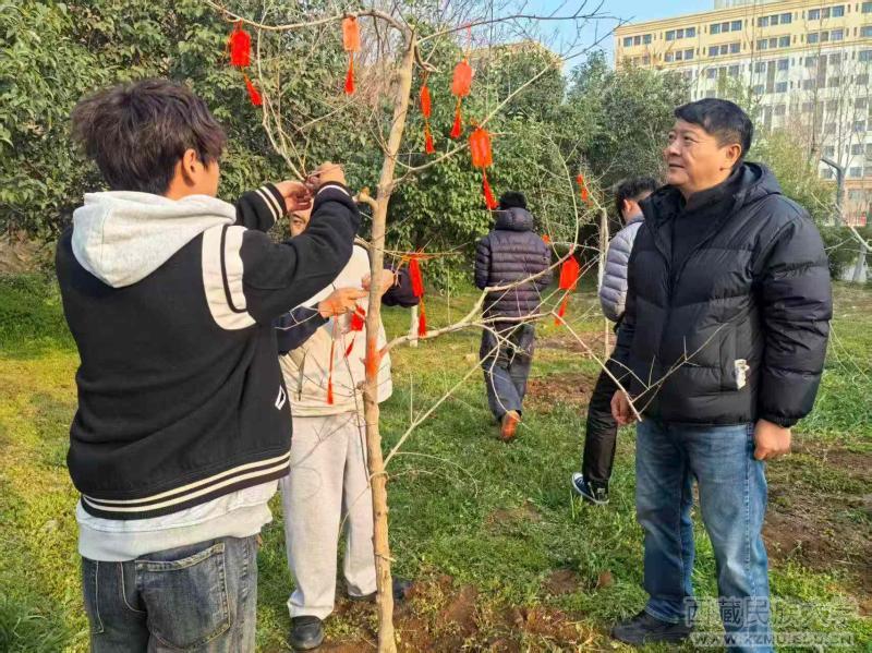 栽种完成后,同学们怀着对民族团结的美好期许,纷纷在石榴树枝头系上心愿牌。大家一笔一画认真书写,将对铸牢中华民族共同体意识的赤诚心声、对各民族携手共进的美好祝愿凝于笔端。小小的心愿牌在春风中轻扬,让民族团结的美好愿景与石榴树苗一同扎根土壤、向阳生长,成为校园里一道别样的风景。
