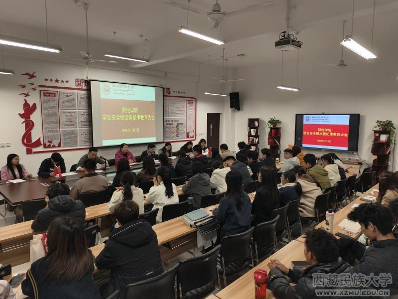 会议传达了学校2026年度工作要点和“32115”工作思路;学习传达了两省区和学校关于安全稳定工作的部署要求,并结合《西藏民族大学大学生安全手册》开展了安全教育要点的学习,引导学生牢固树立总体国家安全观和生命至上理念,提升安全意识和应急处置技能,自觉遵守校纪校规,积极营造安全稳定、健康和谐的校园环境。