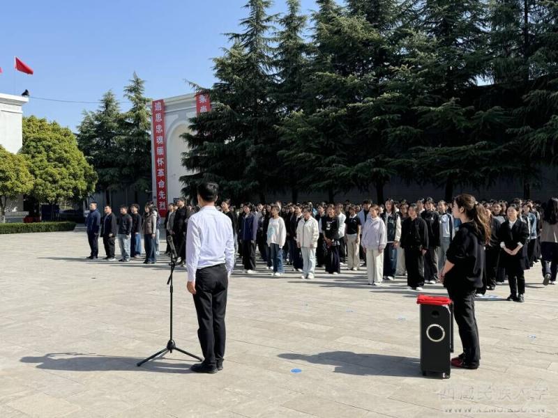 祭奠仪式庄严肃穆。全体人员面向烈士纪念碑肃立默哀,向为民族独立、人民解放和国家富强英勇献身的革命先烈致以最崇高的敬意;随后敬献花篮,整理缎带,寄托无限追思。在烈士墓区与纪念馆内,同学们认真聆听革命事迹讲解,仔细观看历史图片、珍贵文物与文献资料,重温咸阳地区波澜壮阔的革命斗争历程,深刻感悟先辈们忠诚报国、舍生取义、不畏艰险、无私奉献的崇高精神,在沉浸式红色教育中接受思想洗礼、坚定理想信念。