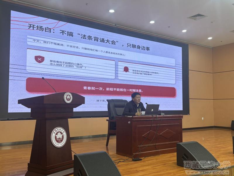 会上,拉巴顿珠书记以“贴近生活、以案释法”为原则,围绕大学生高频法律风险展开细致宣讲,重点讲解帮信罪、盗窃罪、故意伤害罪、代替考试罪、非法校园贷、网络侵权六类常见违法犯罪行为,结合全国高校真实典型案例,剖析出售出借“两卡”、校园盗窃、冲动斗殴、考试替考、违规网贷、网络造谣等行为的法律后果,明确《中华人民共和国刑法》《中华人民共和国民法典》相关规定与立案标准,告诫同学们切勿因贪图小利、一时冲动、心存侥幸而触碰法律红线,叮嘱大家妥善保管银行卡、电话卡及社交支付账号,坚守诚信底线、理性消费、文明上网,做知法、懂法、守法、用法的新时代大学生。