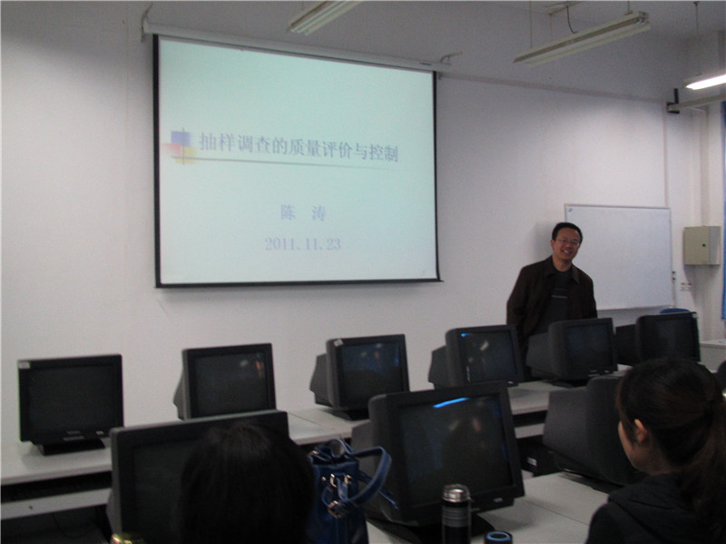 2011年11月23日下午,财经学院今年新引进的英国留学博士陈涛和韩国留学博士刘妤,在4107教室分别作了题为《抽样调查的质量与综合评价》、《浅谈我的研究领域-物流问题》的学术报告,财经学院全体教职工听取了两位博士的报告。