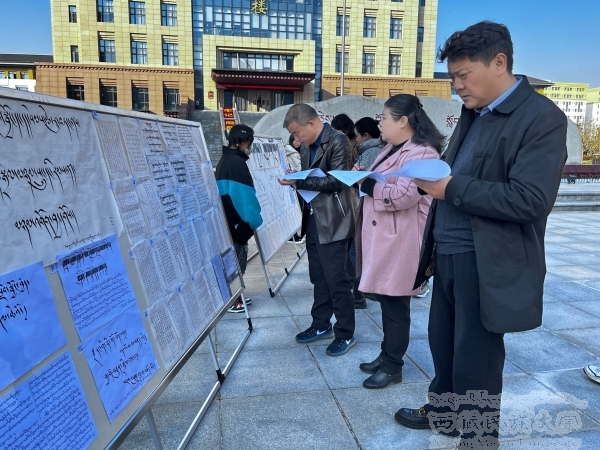 为庆祝建党百年伟业,深入推进党史学习教育,财经学院于2021年11月17日在国华楼前广场举办了“请党放心,强国有我”活动系列之“学党史、强信念、讲团结、共抗疫”主题书画展评活动。学院党委书记拉巴顿珠、副院长魏小文、副书记杨红、全体辅导员及学生会干部百余人观看了书画展活动。