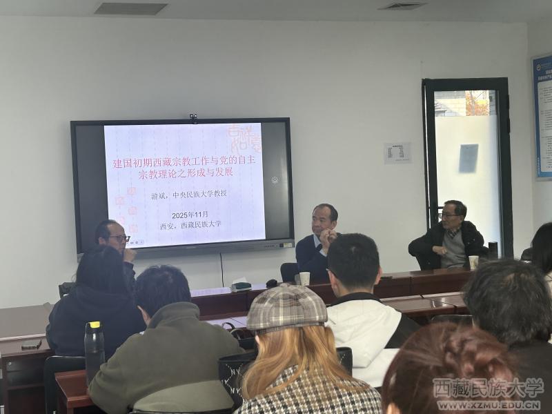 11月15日下午,国家民委人文社会科学重点研究基地西藏民族大学中国共产党治藏方略研究中心特邀国家高层次人才特殊支持计划人才、教育部首届“青年长江学者”、中央民族大学宗教研究院院长游斌教授,为中心师生带来了一场题为“建国初期西藏宗教工作与党的自主宗教理论之形成与发展”的专题讲座。讲座由中国共产党治藏方略研究中心副主任孙琥瑭教授主持,中央统战部甘肃民族宗教研究基地副秘书长钟邦定先生、以及中心秘书邵卉芳副教授和部分学生参加。