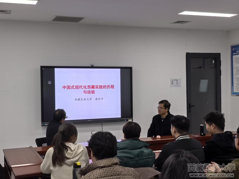 11月24日晚,应国家民委人文社会科学重点研究基地中国共产党治藏方略研究中心邀请,马克思主义学院康欣平教授,来中心作了题为《中国式现代化西藏实践的历程与经验》的学术讲座。中国共产党治藏方略研究中心副主任孙琥瑭教授主持讲座,马克思主义学院、中华民族共同体学院、管理学院部分学生和教师,共计30余人参加。