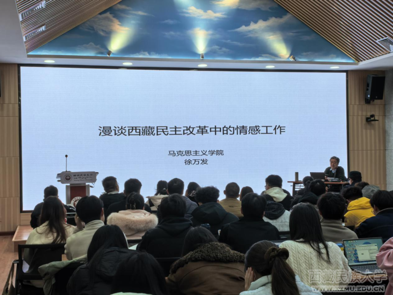 3月16日晚,应国家民委人文社会科学重点研究基地中国共产党治藏方略研究中心邀请,西藏民族大学马克思主义学院二级教授徐万发老师,为学校师生作了题为《漫谈西藏民主改革中的情感工作》的专题学术讲座。中国共产党治藏方略研究中心副主任孙琥瑭教授主持讲座,马克思主义学院、中华民族共同体学院、文学院等多个学院的师生共计100余人参加。