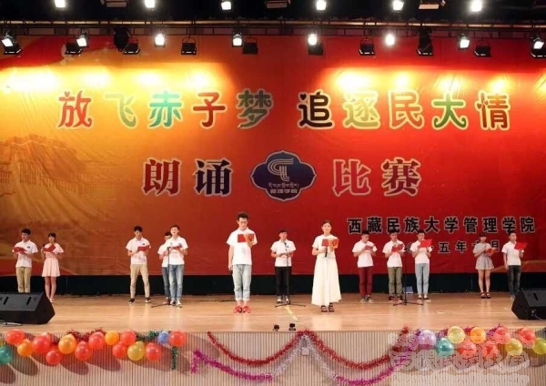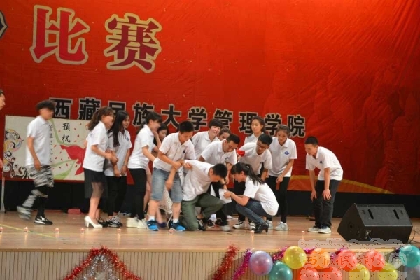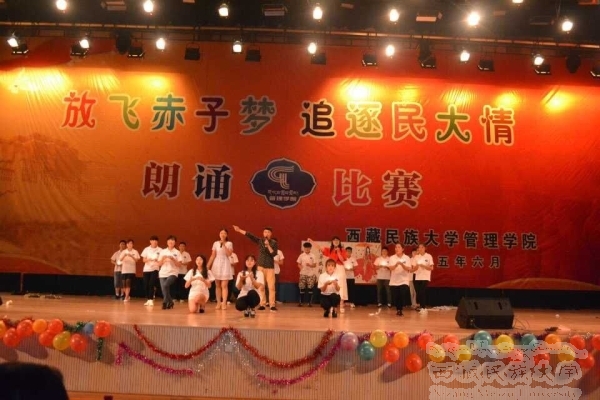 比赛分三个篇章进行,共十个班级参加了比赛。在第一篇章“青春之梦”里,同学们以欢快的舞姿、充满激情的朗诵,表达出对青春的赞美,体现了当代大学生良好的精神面貌。第二篇章“致毕业生”通过对大学生活的回望,见证了从民院到民大的靓丽转身,礼赞了民大人“担当奉献、求真务实、和谐发展”的办学精神。第三篇章“民大腾飞”管院学子立志以更名为新的起点,展望学校美好未来,祝愿学校前程似锦,展现出民大学子“爱国、兴藏、笃学、敬业”的精神。最后,管理学院团总支学生分会学生干部们表演的“共出力、筑彩虹”系列情景剧,展现了团学干部甘于奉献、勇于担当的优良传统,把比赛气氛推向了高潮。