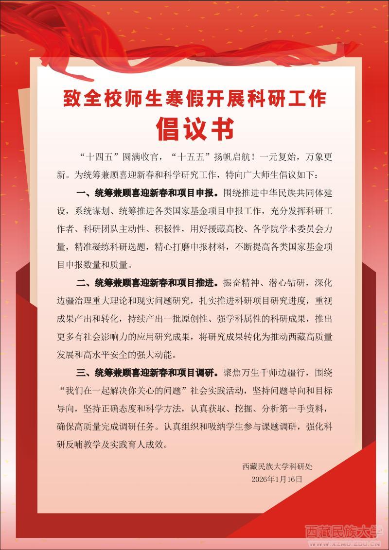 致全校师生寒假开展科研工作倡议书