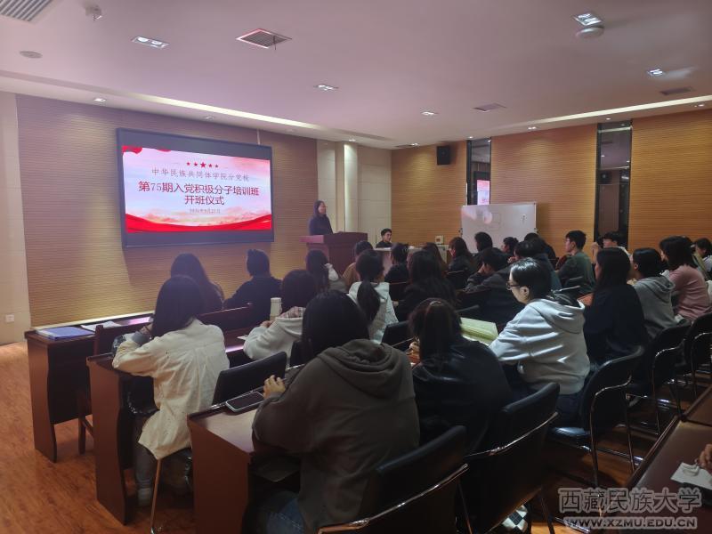 开班仪式严格按照奏唱国歌、学员代表发言、带班老师提要求等环节进行。一是传达学习学校党委党校《关于举办第75期入党积极分子培训班的通知》精神,重点介绍培训方式、课程安排和主要内容等;二是学员代表李卓潞同学以《听党话 感党恩 跟党走》为题发言,承诺认真学习、严守纪律,不断提高觉悟、锤炼党性,争取早日加入党组织;三是副班主任刘虹岩同学介绍了上一期入党积极分子培训班中存在的问题和不足。开班仪式最后还对有关请假事宜、考勤办法、综合成绩评定等进行了说明和强调。