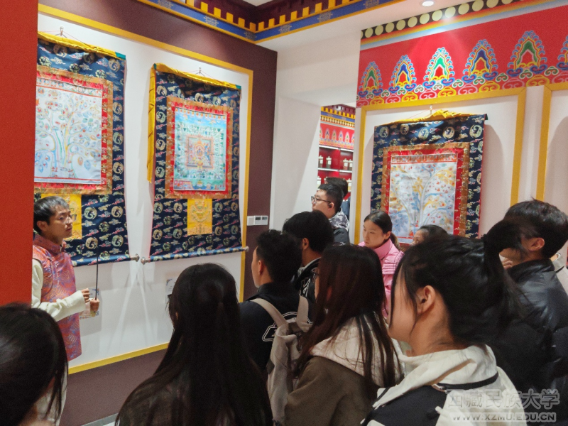 本次活动围绕“我们悟在一起”“我们思在一起”“我们融在一起” 三个环节展开。活动伊始,邵卉芳老师为大家介绍了本次活动的主题和意义,旨在通过深入了解藏医药文化的传承发展,培养同学们观察、分析和思考能力,激发大家对非物质文化遗产保护传承的责任感。同学们在讲解员的带领下,系统了解了藏医药文化的历史渊源、诊疗方法。从《月王药诊》到《四部医典》,同学们深刻感受到了中华文明多元一体的历史脉络。讲解员详细阐述了以“隆、赤巴、培根”为核心的藏医“三因学说”,这一理论体现了古人对生命现象的深刻洞察。在曼唐展区,讲解员为同学们详细讲解曼唐图谱、展示浸制标本。同学们聚精会神,对藏医药文化的深厚底蕴有了更为深刻的体会。最后,老师与同学们进行了热烈讨论。