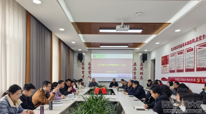 3月6日,马克思主义学院召开教职工大会暨2026年春季学期开学前工作部署会,总结寒假工作,部署年度重点工作任务。学院党委书记摆卉娟主持会议,全体教职工参加会议。