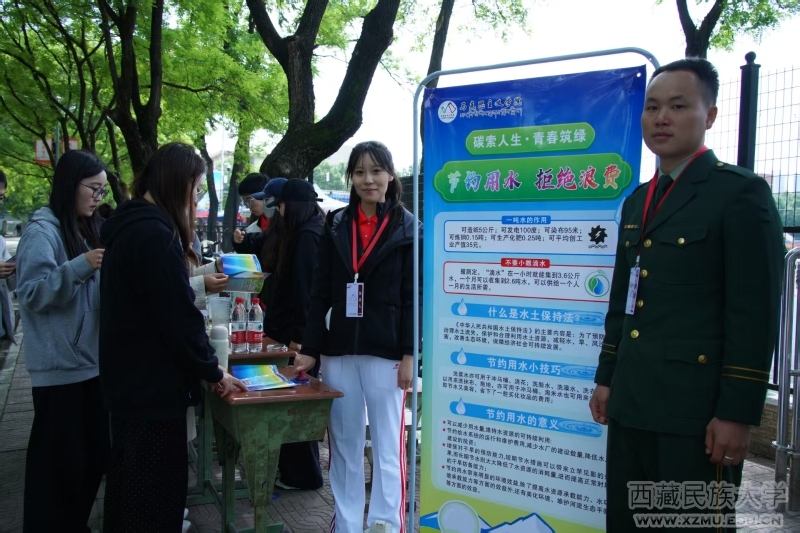 本次活动由马克思主义学院精心策划,采用“沉浸式闯关+实践体验”模式,在校园内设置五个主题关卡:在体育馆北门口,同学们手持量杯,在一分钟内完成精准接水任务,模拟修复未关严的水龙头,并判断节水率。升级挑战中,参与者通过“普通洗手”与“节水洗手”用水量对比实验,直观感受节水潜力,并分享“洗漱间隙关龙头”“洗衣水冲厕”等校园实用技巧。新图书馆门前,同学们随机抽取10张结合校园场景的垃圾卡片,在60秒内投入对应分类垃圾桶。工作人员现场对错误分类进行科普。升级挑战要求100%正确率,并说出3个以上关于垃圾分类的特殊要求,强化了生态保护的重要性。四号教学楼前,同学们通过扫码线上答题或纸质题库,完成10道涵盖“双碳”目标、校园节能、高原生态保护的选择题。得分70分以上即可通关,不少同学主动挑战满分,展现了扎实的低碳知识储备。老图书馆前侧,废弃的塑料瓶、纸箱、旧布料在同学们的巧手中重获新生。30分钟内完成简易手工艺品,升级挑战则需在40分钟内制作兼具实用性与创意性的作品,并为作品命名、阐述低碳理念。优秀作品将被纳入后续展览,进一步传递循环利用的环保智慧。运动场学院大本营旁,同学们提前转发活动推文或在现场录制承诺视频,在承诺墙上写下“自带水杯”“少点外卖”“双面打印”等具体可行的低碳承诺,并签名留念。