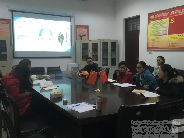 12月22日晚,马克思主义学院民族地区思想政治教育方向研究生举办“习近平新时代中国特色社会主义思想之文化自信”主题学术沙龙活动。马克思主义学院高峰教授参加指导,2016级卢晨曦、王田主持活动,2016级、2017级研究生参加活动。