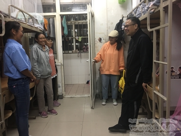 通过之前的主题班会、共进午餐等活动,同学们与史校长已经非常熟悉,建立起了深厚的感情。在宿舍中,史校长对同学们嘘寒问暖,关心大家的日常生活以及饮食等情况,氛围温馨活跃。史本林副校长还仔细查看了宿舍的设施,发现个别宿舍存在风扇杂音大、墙壁渗水等情况,并及时协调有关管理部门进行维修,