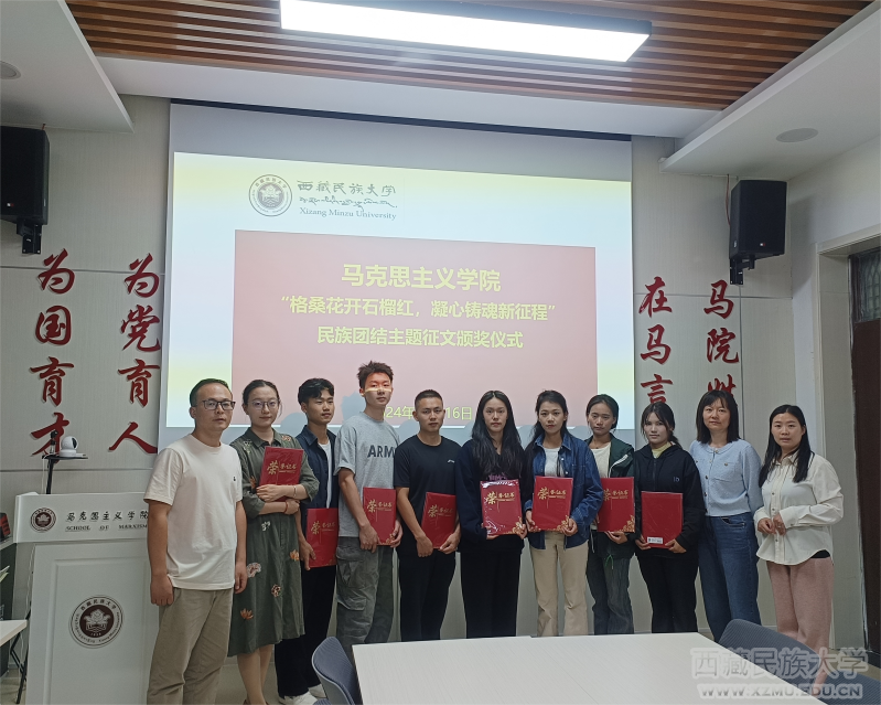 为深入学习贯彻习近平新时代中国特色社会主义思想、党的二十大和二十届二中、三中全会精神,加强民族团结进步教育,推动全体学生铸牢中华民族共同体意识,持续巩固我校民族团结进步创建成果,谱写我校民族团结进步事业新篇章,近日,马克思主义学院在全院研究生和本科生中开展“格桑花开石榴红 凝心铸魂新征程”主题征文活动,并于10月16日为获奖同学颁发获奖证书和奖品。