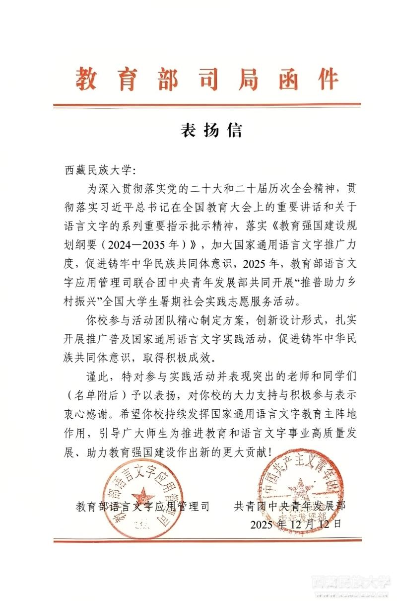 喜报!学校“推普助力乡村振兴”法铎弘声实践团队获教育部、团中央表扬