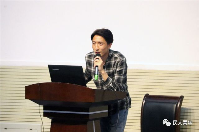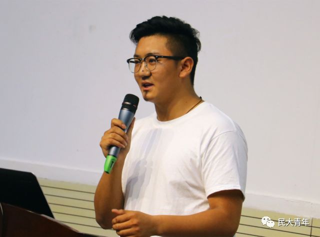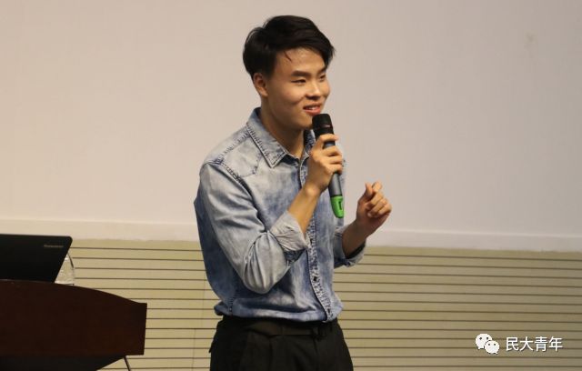 分享会最后,是由来民大青年专题部前副主编的李成浩,为大家分享关于“社会实践及如何做好大学生规划”的内容。大学生规划,用他的一句话说,就是做自己喜欢的,梦寐以求的事情。他表明自己非常喜欢播音主持,喜欢那种站在聚光灯下拿着话筒,表达自己想表达的思想的感觉。因此在高三时期就为这一兴趣所努力,直到现在,他更是为此而初心不改,继续前行。关于社会实践,他分享了去年在中国传媒大学辅修的经验,感叹这世上确实有人过着自己梦寐以求的生活,自己更应努力拼命向前。为自己喜爱的东西奋斗,肯定是一件幸福的事!