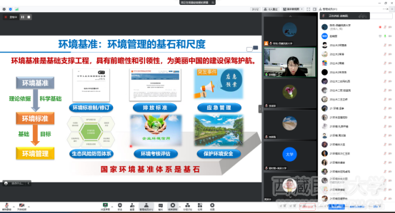 报告结束后,赵晓丽与师生进行了线上讨论交流,回答了师生提出的问题。本次讲座,加深了大家对环境基准在生态环境保护中重要作用的认识,为促进学院加快开展高原环境下生态基准的研究与制定提供了新思路,为环境生态工程专业师生下一步的科学研究拓展了新方向。