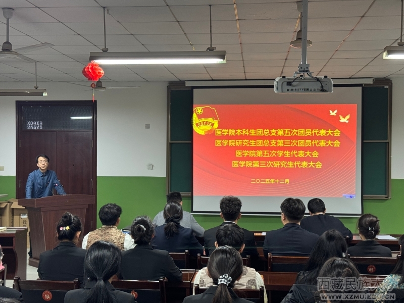 大会在庄严的国歌声中拉开帷幕。周伟团代表学院党委致开幕词,对大会的顺利召开表示热烈祝贺,对学院团学组织在思想引领、校园文化建设、服务青年成长等方面取得的工作成效表示诚挚谢意,并向全体青年代表提出殷切期望:一是在共学共进、互帮互助的实践中,不断深化对中华民族共同体意识的理解与认同,自觉当好民族团结的践行者、校园和谐的守护者;二是立足西藏发展实际,将个人理想追求融入服务西藏长治久安和高质量发展的大局之中,主动扛起时代大任;三是以精湛医术为立身之本,以高尚医德为从业之基,传承艰苦奋斗精神,积极投身边疆医疗卫生事业,努力成长为党和人民信赖的卓越医学人才。
