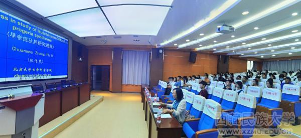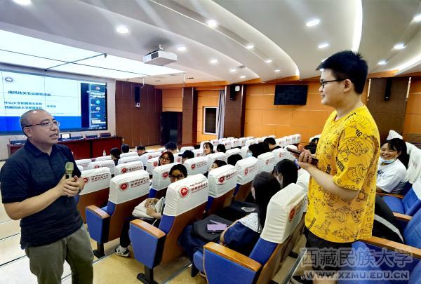 田国宝作了《临床细菌耐药与感染》讲座,他从自己的科研成果讲了细菌耐药性的危害与严重性。王传超作了《中华民族共同体的遗传学基础》讲座,他通过遗传学大数据解析人群遗传结构进而反推人类进化史,在研究过程中提取群体特征是关键,其中讲解汉藏同源的各类研究及Nature发表的台湾汉本遗址古人与南岛和壮侗语人群的遗传近缘性,令人印象深刻。徐景勃作了《痛风性关节炎的研究进展》讲座,他分别从痛风性关节炎的概念、预防和治疗等方面进行详细介绍,并通过真实特殊人群痛风性关节炎病例引起同学们对痛风疾病及其危害的重视。张传茂作了《早老症及其研究进展》讲座,他介绍了这种罕见病的发病原因、临床症状,以及目前国际国内对于缓解早老症的研究进展作了详细的讲解,为同学们展示了自己团队在治疗早老症药物筛选与治疗的最新研究成果,相信通过未来的进一步研究,上述治疗方法会日趋成熟。会后的互动环节,同学们积极发言、踊跃提问,三位专家一一耐心解答。